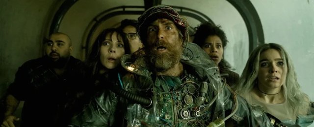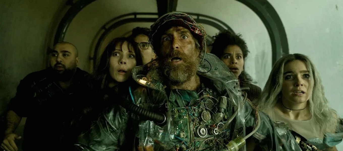 Początek to prawdziwa bomba. Kilka ujęć i już odmalowaną mamy problematykę oraz nastrój filmu – można by go pokazywać w szkołach filmowych jako wzór sprawnego opowiadania obrazem. Typowy amerykański diner, całkiem jeszcze gwarny po dziesiątej wieczór, obsługa uwija się, roznosząc zamówienia między stolikami, klienci zaś… gorliwie skrolują telefony. Nagle wpada tu jakiś świr (Sam Rockwell) – owinięty w foliowy płaszcz, pod którym kłębią się kable, baterie, wszystko bardzo retro futuro. Wygląda jak kloszard i opowiada niestworzone rzeczy: coś o tym, iż przybył z przyszłości, która nie jest różowa, iż czas się przebudzić, odłożyć telefony i ratować świat… Nikt jednak choćby nie zwraca na niego uwagi (wiadomo: Tinder, lajkowanie kotków, odpisywanie na wiadomości) do momentu, kiedy wykrzykuje, iż ma bombę, a co więcej – na każdego jakiś hak. Okazuje się, iż zna imiona wszystkich zgromadzonych i o każdym wie coś, czego wiedzieć nie powinien.
