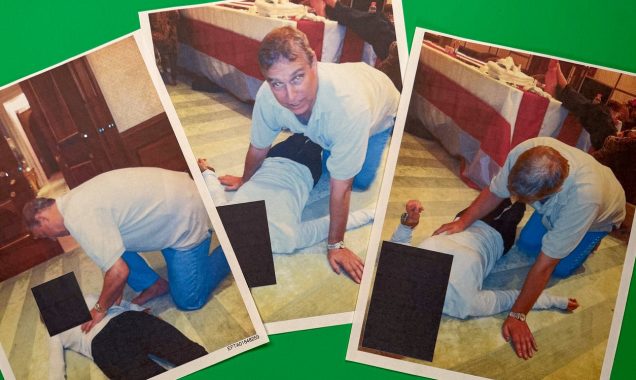 W opublikowanych materiałach znalazły się także trzy fotografie przedstawiające osobę przypominającą Mountbatten-Windsora, klęczącą nad kobietą, której twarz została zamazana. Na jednym ze zdjęć mężczyzna ubrany w niebieskie dżinsy i koszulkę polo spogląda prosto w obiektyw. Na pozostałych wygląda, jakby rozmawiał z kobietą, trzymając dłoń na jej brzuchu. Zdjęcia nie zostały opatrzone opisem ani informacją o czasie i miejscu ich wykonania.