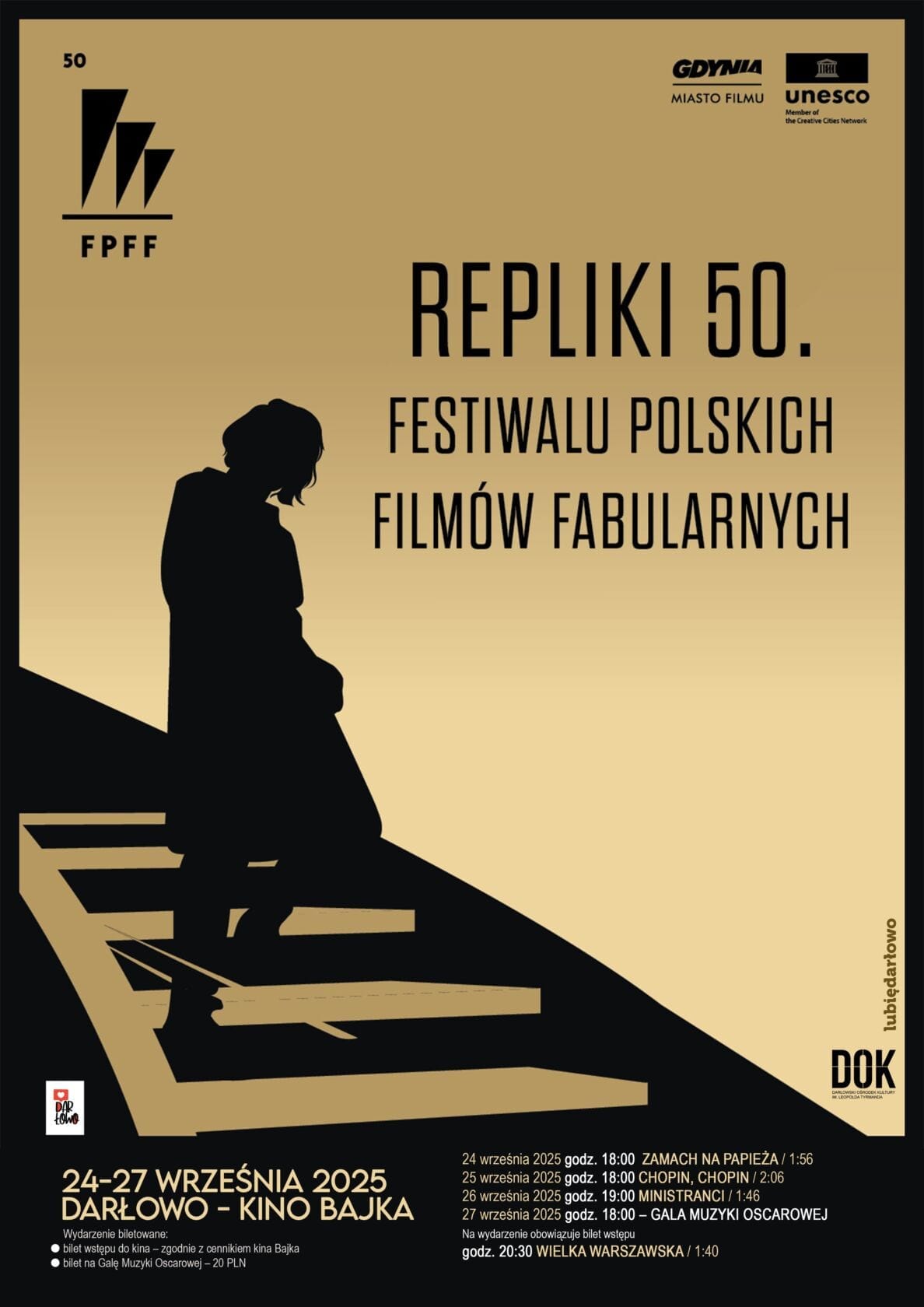 Darłowski Ośrodek Kultury im. Leopolda Tyrmanda zaprasza serdecznie do udziału w filmowych wydarzeniach, jakie odbędą się w kinie Bajka w Darłowie. Ich organizacja powiązana jest z Festiwalem Polskich Filmów Fabularnych (FPFF), który w tym czasie będzie odbywał się w „Mieście z morza” – Gdyni, świętując okrągły jubileusz: pięćdziesiąt lat istnienia.