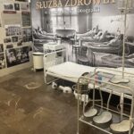 Sala ekspozycyjna przypomina część sali szpitalnej, gdzie jest łóżko dla pacjenta, kroplówki i naczynia sanitarne. Na wystawie można także zobaczyć jak wyglądała dawniej apteka i gabinet lekarski.