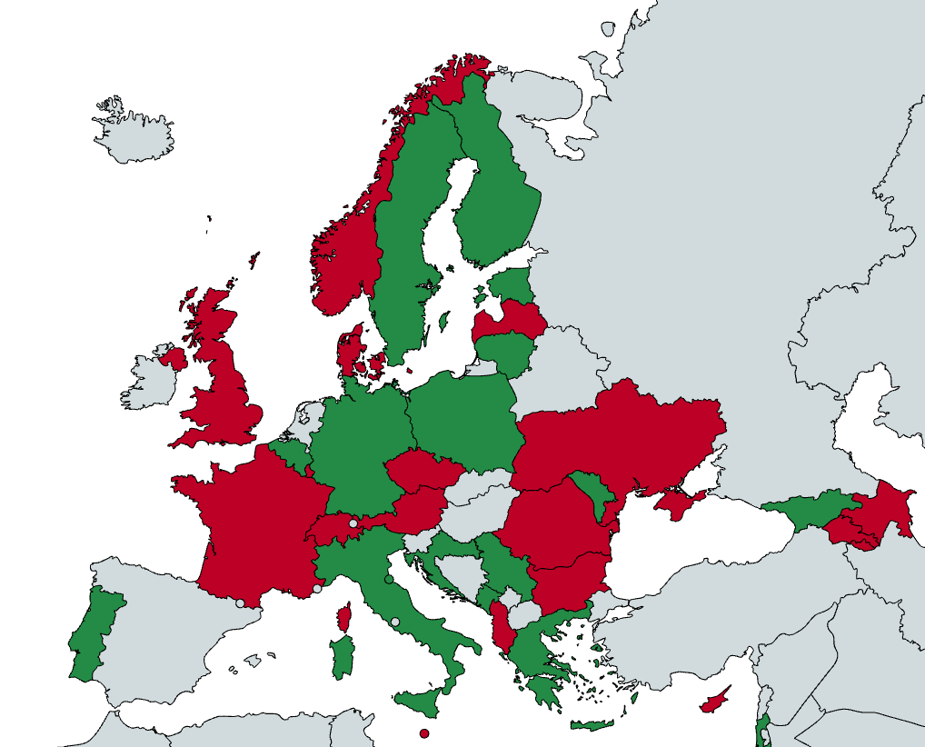 Druga połowa: Belgia, Czarnogóra, Estonia, Izrael, Litwa, Polska, San Marino, Serbia