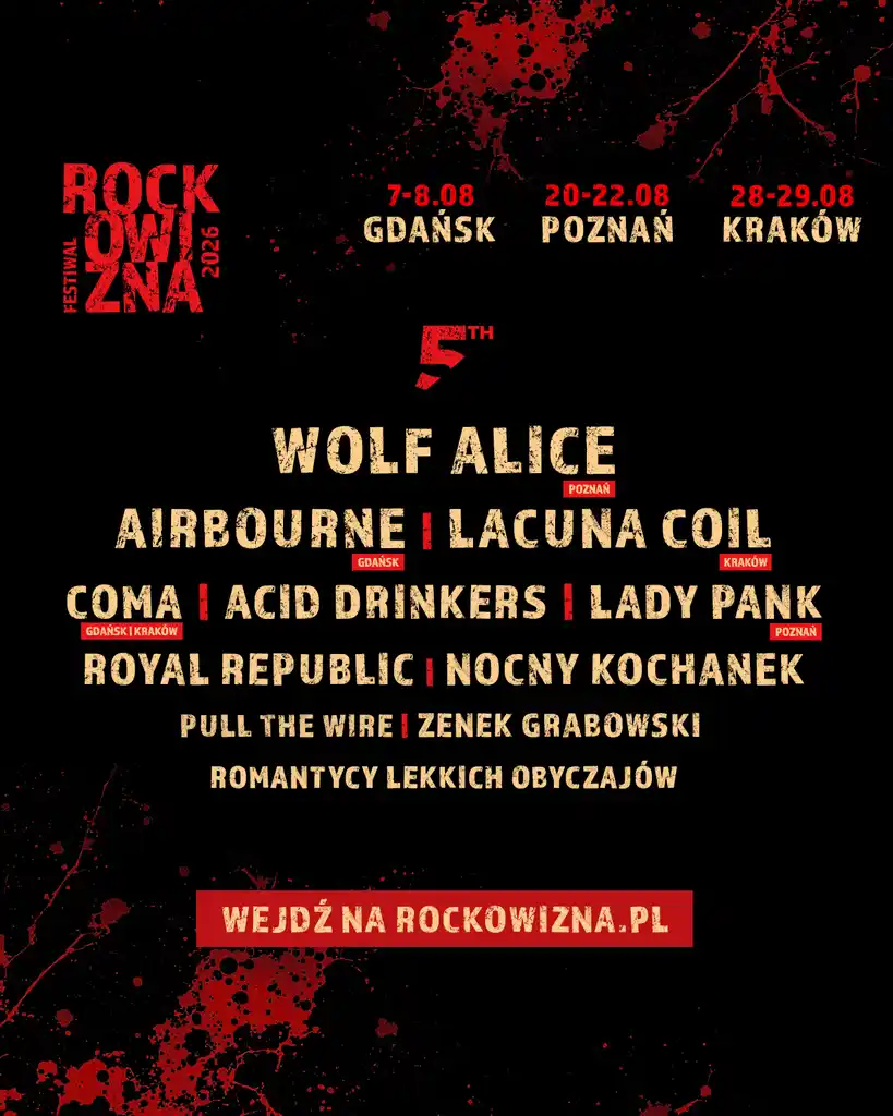 Zapraszamy na 5-edycję Festiwalu Rockowizna, która już w sierpniu 2026 odbędzie się w Gdańsku, Poznaniu i Krakowie. Największa, rockowa trasa festiwalowa w Polsce ponownie połączy pokolenia.