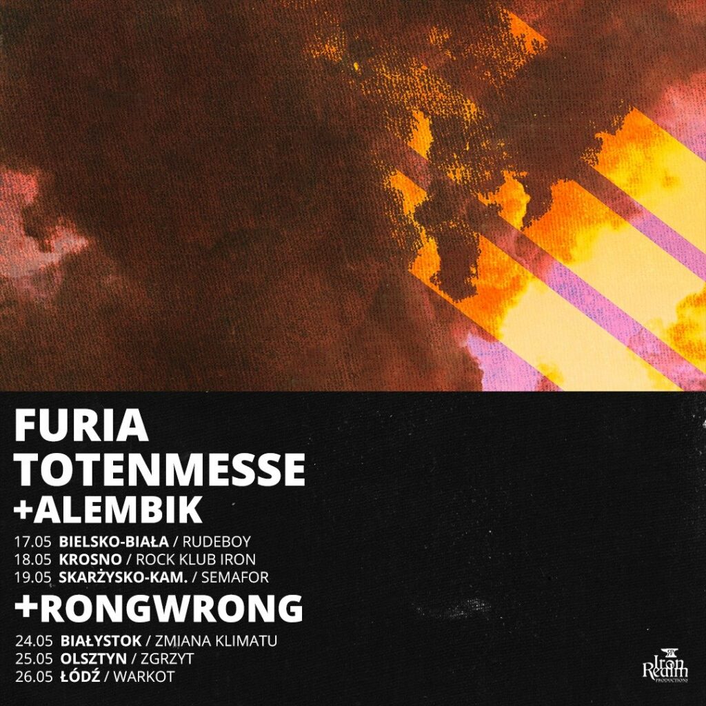 Podczas najbliższego weekendu zespół Furia, który otrzyma wsparcie od Totenmesse oraz RongWrong pojawi się jeszcze w Białymstoku, Olsztynie oraz Łodzi.