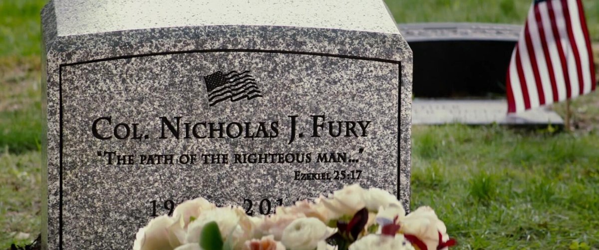 Film braci Russo do dziś uznawany jest za jedną z najlepszych odsłon MCU, a sporą rolę ma w nim Nick Fury, w którego wciela się Samuel L. Jackson. W filmie Fury (uwaga, spoiler!) pozoruje swoją śmierć i ma choćby okazję odwiedzić postawiony mu nagrobek. Na kamieniu wyryty jest cytat z Księgi Ezechiela - ten sam, który w "Pulp Fiction" recytuje Jules. W ten sposób twórcy nawiązali do jednej z najsłynniejszych i najbardziej docenianych wcześniejszych ról Jacksona.