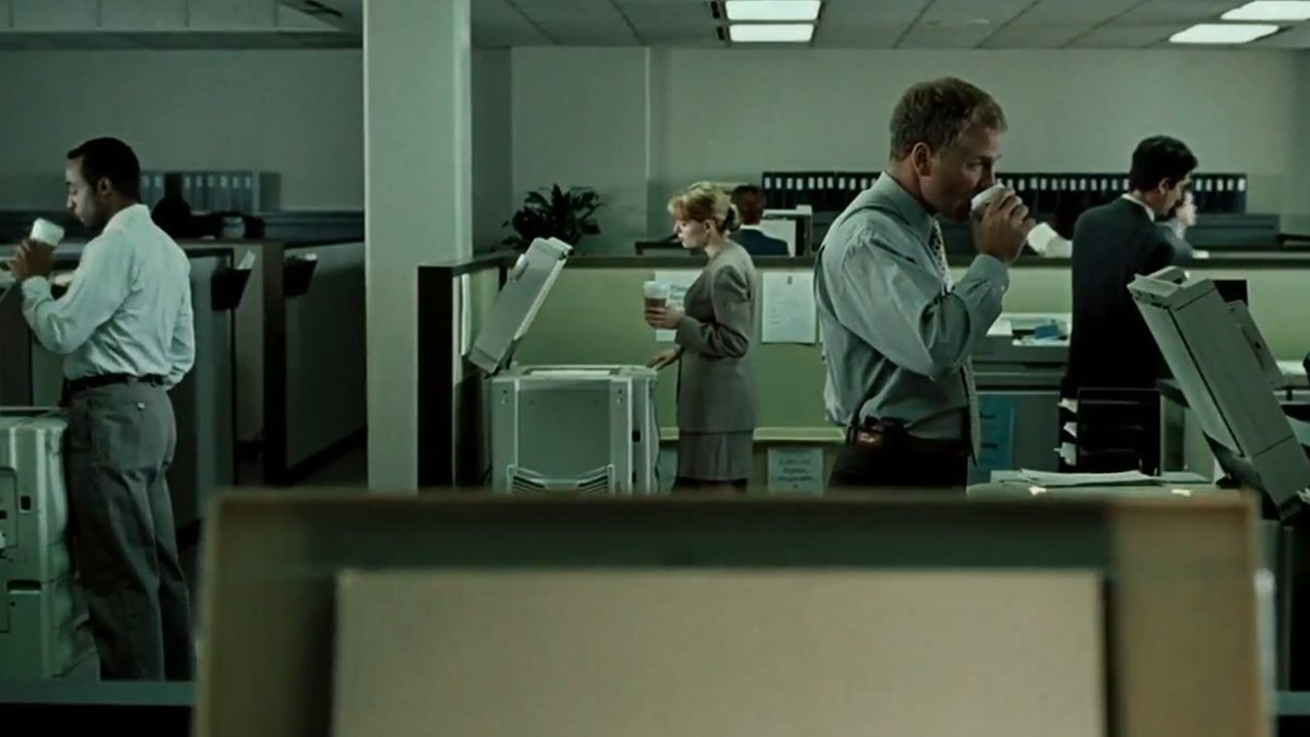 W niemal każdej scenie "Fight Clubu" da się dostrzec kubek Starbucksa - niby drobny detal, ale nieprzypadkowy (nie to, co w niesławnej wpadce z "Gry o tron"). David Fincher wykorzystał go jako ironiczny komentarz do świata korporacji i wszechobecnego konsumpcjonizmu, który film przecież otwarcie krytykuje. To jednak dopiero początek zabawy. Jeszcze zanim Tyler Durden na dobre pojawi się w fabule, jego postać przemyka przez ekran w pojedynczych klatkach, dosłownie na ułamek sekundy.
