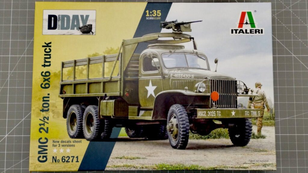 Prezentowany tutaj model ciężarówki GMC został wydany z okazji uczczenia 80 rocznicy D-Day, która obchodzona była 6 czerwca 2024 roku (dla nieinteresujących się historią – D-Day, to określenie na lądowanie aliantów w Normandii w 1944 roku). Samochód ciężarowy GMC 2,5 ton. 6×6 był bardzo udanym pojazdem terenowym o ładowności 2,5 tony i napędzie na wszystkie koła. Ciężarówka była produkowana w bardzo dużych ilościach w okresie od 1941 do 1945 roku, głównie na potrzeby armii amerykańskiej.