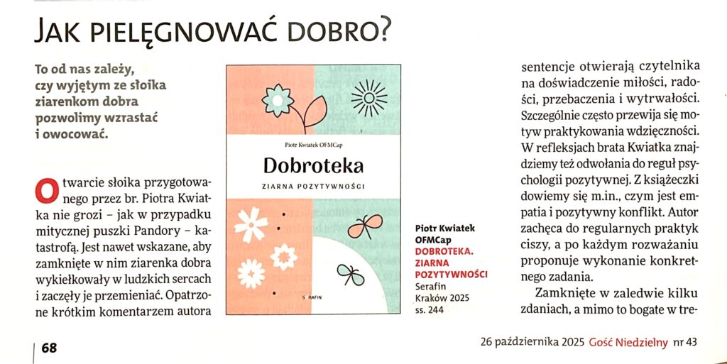 W najnowszym GOŚCIU NIEDZIELNYM, krótka recenzja książeczki „Dobroteka. Ziarna pozytywności” – Piotr Kwiatek
