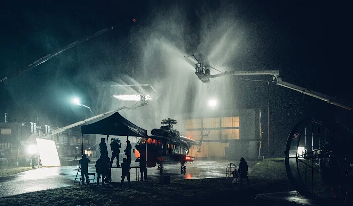 „Heweliusz” (Fot. Netflix)W innych chwilach „Heweliusz” zabiera widzów do Wrocławia i Zgorzelca, który „zagrał” południową część Warszawy. Do samej stolicy ekipa też oczywiście trafiła, acz warto dodać, iż sięgnięto też po nagranie archiwalne przedstawiające miasto w latach 90.
