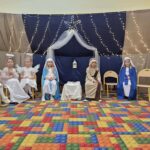 Dla wielu zgromadzonych gości było to wyjątkowe wydarzenie pełne refleksji i radości. Dzieci z grupy 0B wykazały się dużą odwagą, zaangażowaniem i sceniczną dojrzałością, a ich wysiłek został nagrodzony gromkimi brawami. Piękne, starannie przygotowane stroje dodatkowo podkreśliły uroczysty charakter przedstawienia. Jasełka „Historia cudownej nocy” były nie tylko występem artystycznym, ale także pięknym przykładem pielęgnowania bożonarodzeniowych tradycji.