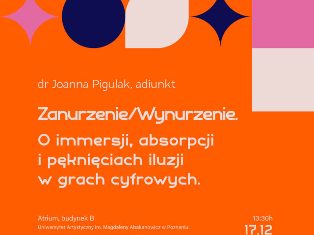 Zapraszamy na wykład otwarty pt. „Zanurzenie/Wynurzenie. O immersji, absorpcji i pęknięciach iluzji w grach cyfrowych.”