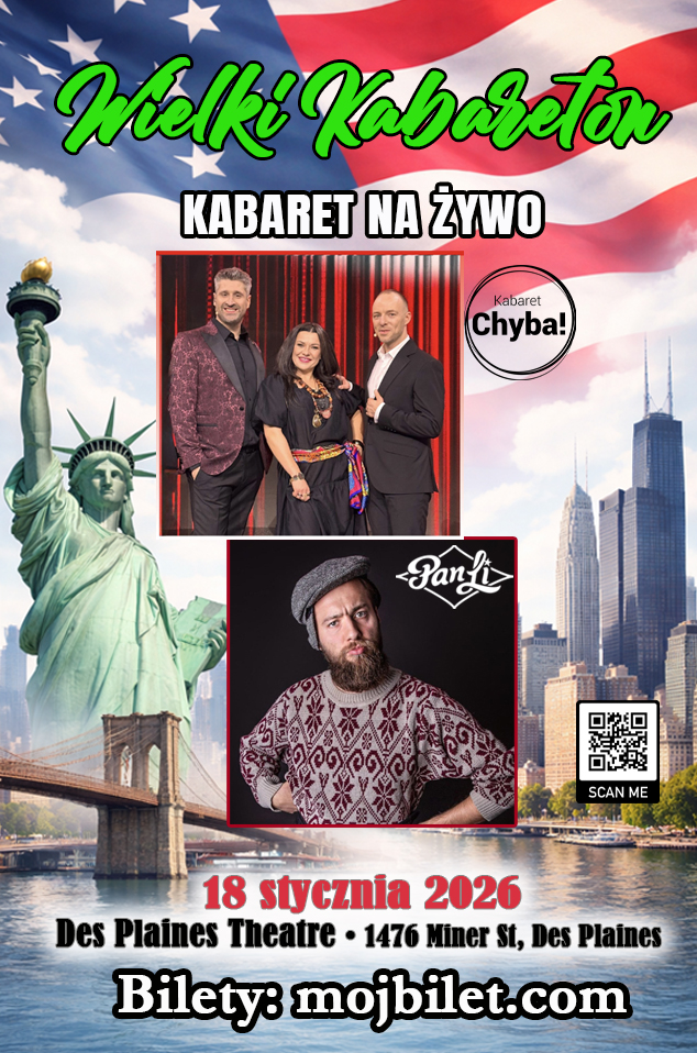 Chicago szykuje się na wieczór pełen humoru. Już 18 stycznia na scenie Des Plaines Theatre wystąpi jeden z najpopularniejszych polskich zespołów kabaretowych – Kabaret Chyba. Dla chicagowskiej Polonii to wyjątkowa okazja, by zobaczyć artystów znanych z największych scen kabaretowych w Polsce. Bilety dostępne są na stronie mojbilet.com.
