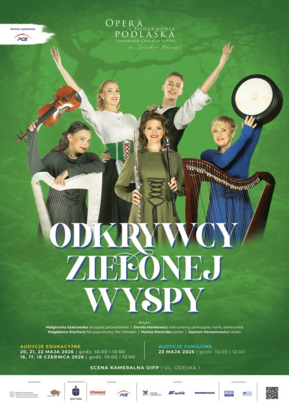 W repertuarze znalazła się także audycja muzyczna Odkrywcy Zielonej Wyspy, będąca zaproszeniem do wspólnej, pełnej dźwięków i wyobraźni podróży. To interaktywne spotkanie pozwoli dzieciom odkrywać muzykę wszystkimi zmysłami – poprzez słuchanie, ruch i aktywne uczestnictwo. Uczniowie poznają kulturę muzyczną Irlandii, jej charakterystyczne instrumenty, a także niecodzienne sposoby wydobywania dźwięku, m.in. grę na łyżkach. Pomysłodawczyni audycji Dorota Markiewicz podkreśla: – Chcemy w pełni wykorzystać potencjał Opery – z jednej strony budujemy bajkowy klimat, sięgając po barwne irlandzkie opowieści, multimedia i dekoracje. Z drugiej – stawiamy na ruch. Dzięki naszym tancerzom te historie nie zostaną tylko opowiedziane, ale ożyją na scenie w artystycznej formie, dopełnionej brzmieniem tradycyjnych instrumentów ludowych, a nasi młodzi widzowie będą stepować i budować warstwę rytmiczną razem z nami.