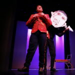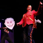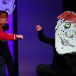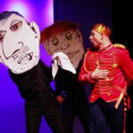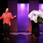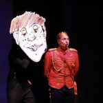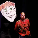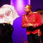 17.12.2025. Kielce, Teatr Lalki i Aktora „Kubuś”. Konferencja przed premierą spektaklu „Król Maciuś Pierwszy”. / Fot. Wiktor Taszłow – Radio KielceMateusz Drozdowski jest jedynym aktorem, który w tym spektaklu nie zasłania twarzy. Pozostałe postaci mają maski. Jak zaznacza Tomasz Man, autor adaptacji książki i reżyser, to celowy zabieg.
