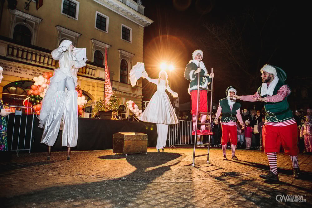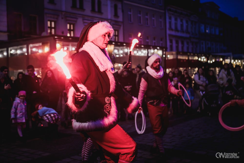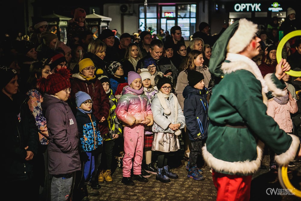 Kulminacją wieczoru był spektakularny pokaz ogniowo-pirotechniczny, który rozświetlił ostrowski Rynek feerią barw. Dynamiczne choreografie z wykorzystaniem żywego ognia i efektów specjalnych zachwyciły zarówno dzieci, jak i dorosłych, tworząc niezapomniane zwieńczenie świątecznego spotkania.