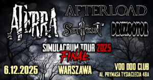 Już w najbliższą sobotę, 6 grudnia, w warszawskim klubie VooDoo odbędzie się finałowy koncert trasy ATERRA – „Simulacrum Tour 2025”. Oprócz nich na scenie będzie można zobaczyć: Afterload, Setheist oraz Druzgotor. Bilety będą kosztować 60 zł, a dla dzieci i młodzieży poniżej 18 roku życia jedyne 30 zł. Start imprezy godz. 19. Pełne info o koncercie w wydarzeniu: