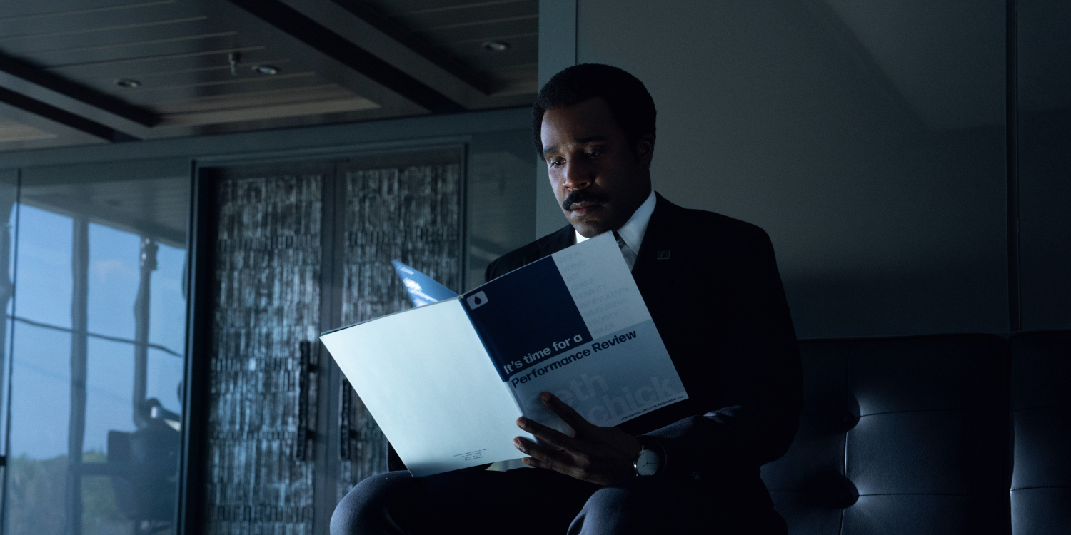 „Rozdzielenie” (Fot. Apple TV+)O ile w 1. sezonie „Rozdzielenia” pan Milchick był intrygującą i enigmatyczną postacią drugoplanową, o tyle w kontynuacji jego znaczenie wyraźnie wzrosło, a wraz z awansem bohatera jeszcze mocniej wybił się też Tramell Tillman. Musząc balansować pomiędzy niezadowolonym szefostwem i nieułatwiającymi mu życia rafinerami danych, Milchick z coraz większym trudem skrywał targające nim uczucia, a Tillman znakomicie oddawał jego stopniowo wypełzający na zewnątrz wewnętrzny niepokój. Dodając nowe, wcześniej nieznane warstwy do wydawało się, iż pozbawionej ich postaci, aktor udanie przeszedł drogę od korporacyjnego osiłka do kogoś więcej, a na dodatek znów mógł zaprezentować swoje taneczne umiejętności, tym razem w zestawie z całą orkiestrą. jeżeli za coś dostawać Emmy, to właśnie za to. [MP]