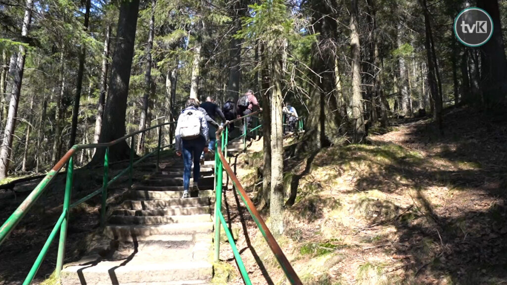 Trasa na szczyt wiedzie przez skalne labirynty oraz metalowe i kamienne schody. Na szczycie znajduje się platforma widokowa, która nosi nazwę Tron Liczyrzepy lub Fotel Pradziada.