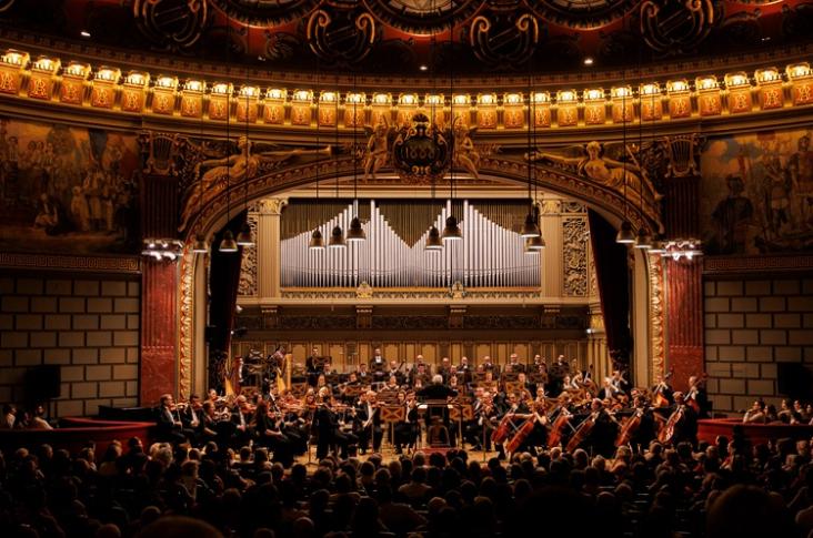 Orkiestra Filharmonii im. George’a Enescu z Bukaresztu na estradzie Filharmonii w Krakowie