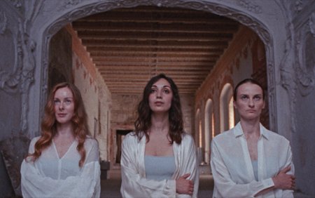 Słowa "oddech" i "świeże powietrze" są tu zresztą całkiem na miejscu. Akcja toczy się bowiem w przewiewnych pałacowych ruinach, w pięknych okolicznościach pogody i przyrody, gdzie trzy kobiety spędzają czas, ćwicząc między innymi wstrzymywanie oddechu. H (współreżyserka Helena Ganjalyan), M (Magdalena Fejdasz) i D (Daniela Komędera) czytają, tańczą, opalają się i uczą języków pod nadzorem kojącego, ale stanowczego głosu, który mógłby należeć do Krystyny Czubówny w jakimś programie przyrodniczym (w rzeczywistości to głos Karoliny Porcari). W tle przygrywa Vivaldi, świeci słońce – kultura i sielanka. Przy bliższej obserwacji ta pozorna idylla zaczyna jednak wyglądać coraz bardziej opresyjnie. Wszelkie potrzeby kobiet są niby zaspokajane – ale pod warunkiem poddania się kolejnym egzaminom, wymaganiom i zakazom. Najważniejszy z nich to zakaz opuszczania terenu. Mamy tu więc coś między obozem jogi, warsztatami tańca czy szkołą językową a… więzieniem.
