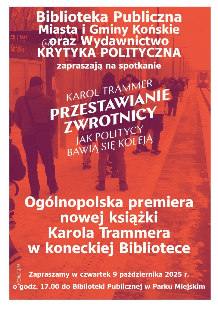 W czwartek, 9 października o godzinie 17:00, Biblioteka Publiczna Miasta i Gminy Końskie będzie gospodarzem ogólnopolskiej premiery najnowszej książki Karola Trammera, autora bestsellerowego „Ostrego cięcia”, zatytułowanej „Przestawianie zwrotnicy, czyli jak politycy bawią się koleją”. Wydarzenie to będzie również okazją do spotkania z autorem.
