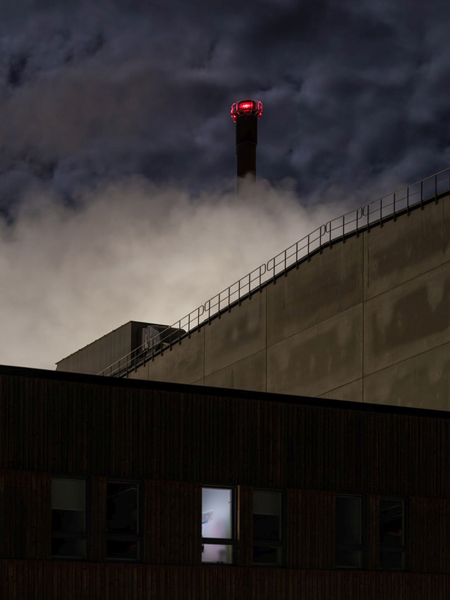 Zwycięzca: Markus Naarttijärvi (Szwecja) Za zdjęcie papierni w Obbola (Szwecja) otoczonej pokładami cieni, betonu i chmur w ciemną listopadową noc.