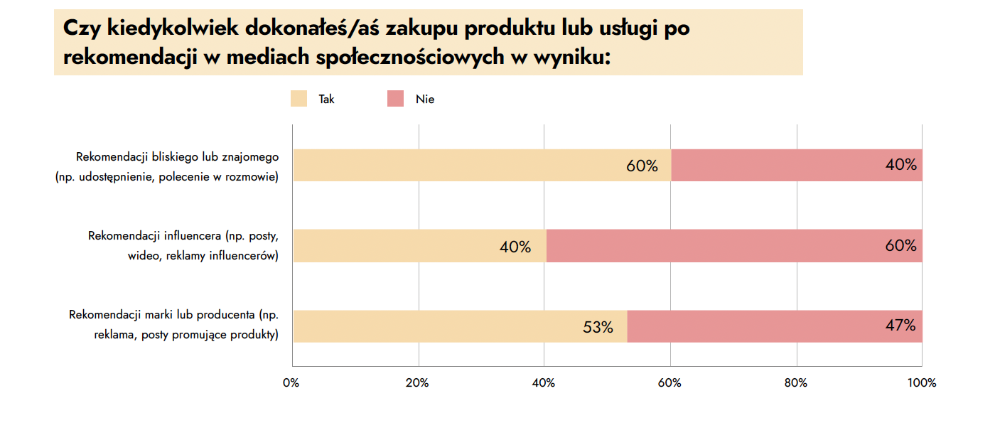 – „Na pierwszy rzut oka w wynikach badania zaskakuje niski wpływ rekomendacji influencerów na decyzje zakupowe - jedynie 40,22% respondentów zadeklarowało zakup produktu pod ich wpływem, podczas gdy rekomendacje marek oraz bliskich zostały ocenione wyraźnie lepiej.