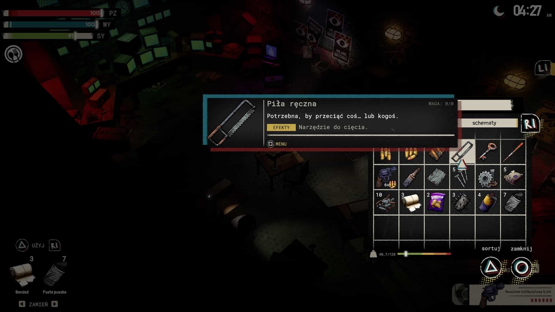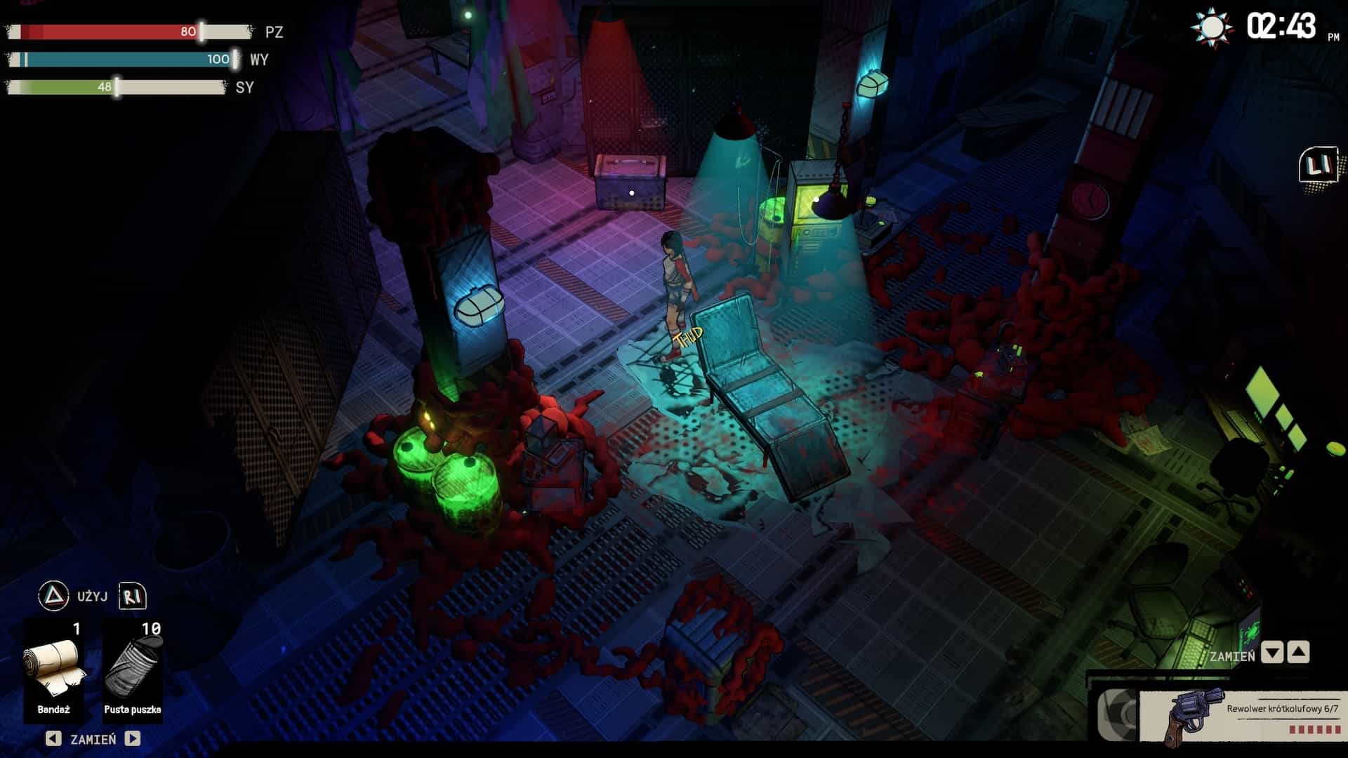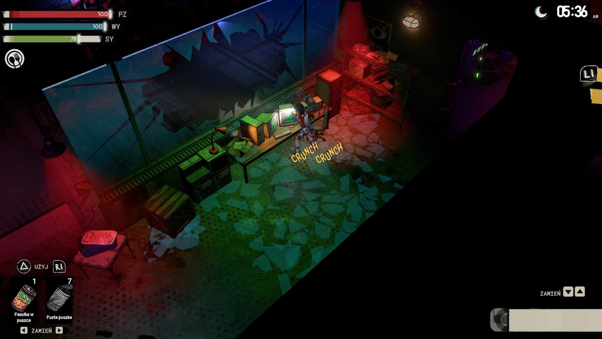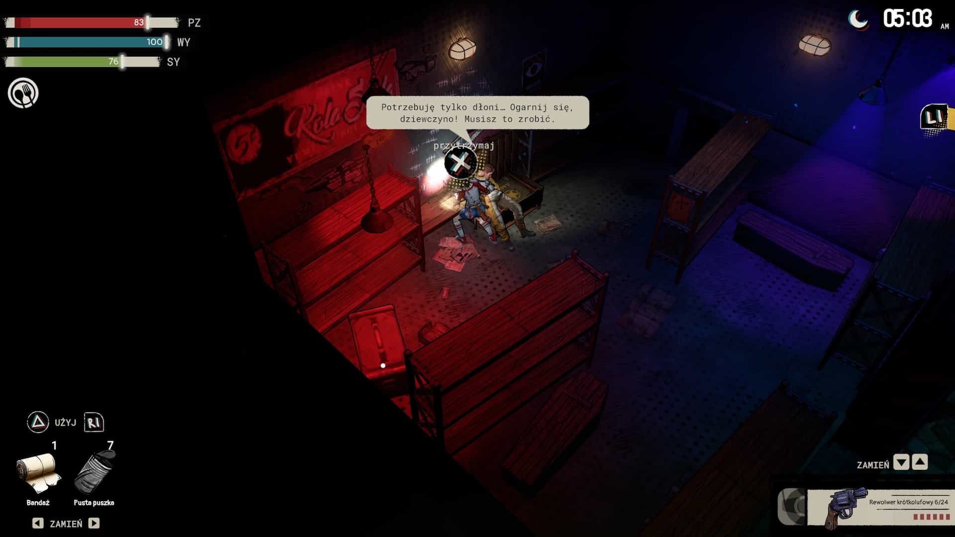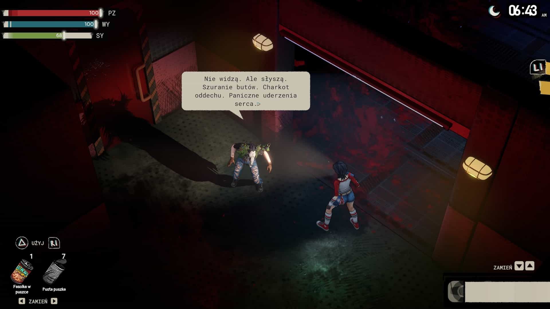 Weźmy chociaż mechanikę głodu, która wymaga od nas sporadycznej przekąski, by napełnić stale zmniejszający się pasek. Nie dodaje ona do rozgrywki nic poza irytacją, gdy staniemy w miejscu na zbyt długo lub, co gorsza, klikniemy przypadkiem przycisk szybkiego posilenia się. A zdarzy się nam to nader często, bo sterowanie w IHTP jest absolutnie koszmarne.