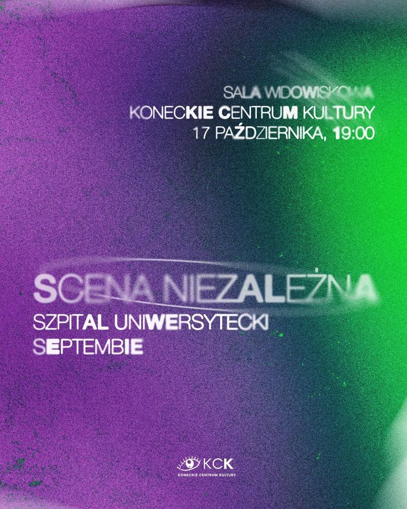 Już 17 października o godzinie 19:00 w Sali Widowiskowej Koneckiego Centrum Kultury wystąpi zespół Szpital Uniwersytecki – świeży i intrygujący głos niezależnej sceny muzycznej z Końskich.