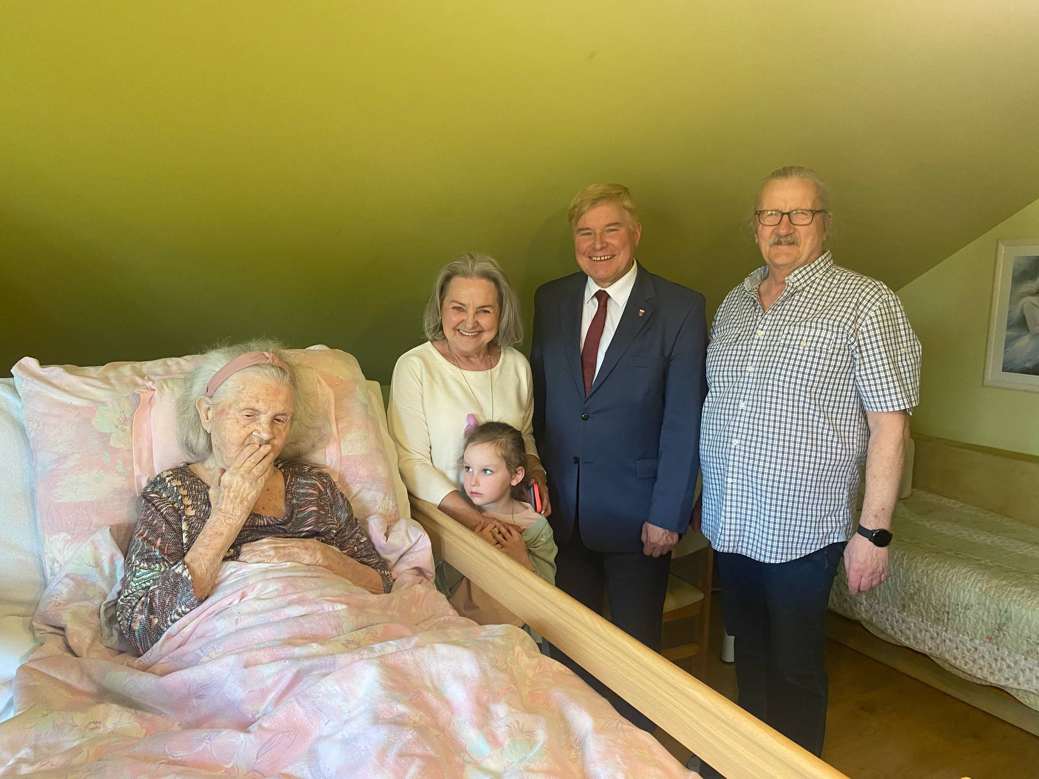 KROSNO.Z wielką euforią i wzruszeniem informujemy, iż Pani Maria Mazurek, mieszkanka Krosna, obchodziła niedawno swoje 100. urodziny. Z tej okazji dostojną Jubilatkę odwiedził Prezydent Miasta Krosna Piotr Przytocki, składając najserdeczniejsze życzenia zdrowia, spokoju i nieustającej radości. Wraz z gratulacjami wręczone zostały kwiaty oraz drobny upominek od władz miasta.