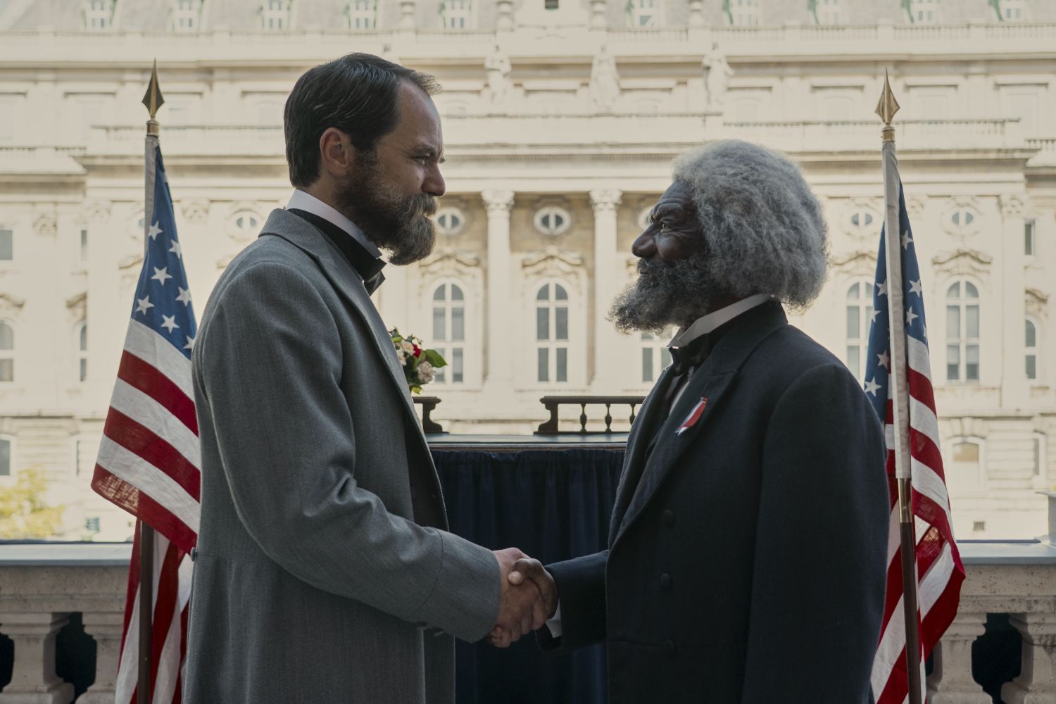 „Śmierć od pioruna” (Fot. Netflix)Drugą bardzo niejednoznaczną postacią okazuje się Chester A. Arthur (Nick Offerman, „The Last of Us”), wiceprezydent zmuszony do objęcia funkcji po śmierci Garfielda. I znów, taka postać, pozornie nieprzejmująca się innymi, skupiona na sobie, a w praktyce zdolna do wielkiej przemiany, honorowych czynów i szczerej przyjaźni, to przecież rola wręcz skrojona dla Offermana, tyle tu, nie tylko w scenach po alkoholu, Rona z „Parks and Recreation”.