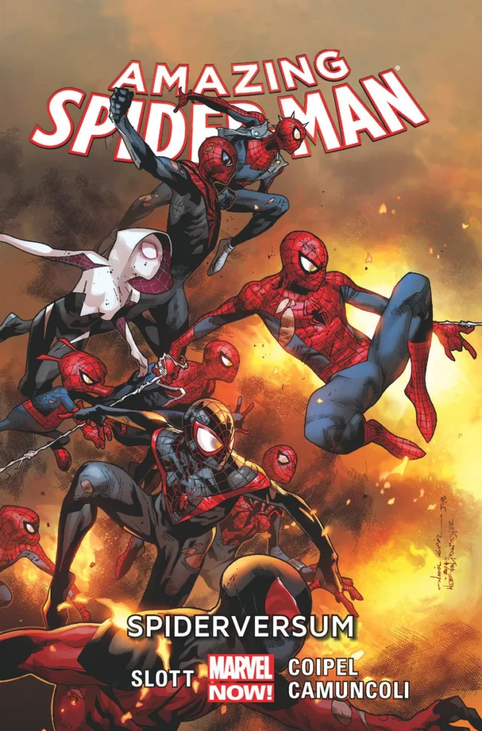 Rozpoczyna się epicka walka o przetrwanie w ramach wydarzenia Spiderversum! Pajęcze totemy z całego multiwersum jednoczą siły, aby stawić czoła bezlitosnemu Morlunowi i jego głodnej rodzinie. Choć Peter Parker ma pewne zastrzeżenia co do dowództwa Otto Octaviusa, nie ma czasu w spory, gdyż potyczki z Dziedziczącymi gwałtownie eskalują w otwartą wojnę. Stawka jest ogromna – przyszłość wszystkich Spider-Manów, w tym Silk, Milesa Moralesa i Miguela O’Hary, zależy od ich determinacji i poświęcenia. Ta trzymająca w napięciu opowieść została stworzona przez Dana Slotta, a za wizualną stronę odpowiadają utalentowani Giuseppe Camuncoli i Olivier Coipel.