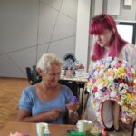 – Pokazuję, jak robić kwiaty z bibuły, które nawiązują do charakterystycznego dla strojów bamberskich nakrycia głowy. Panie noszą kornet, przypominający kwiatową koronę – zaznaczała Dominika Marciniak, Towarzystwo Bambrów Poznańskich. – Wykonanie takiego kornetu to duże wyzwanie, ale robimy kwiaty z bibuły z krepiny włoskiej, które składają się na jego część.