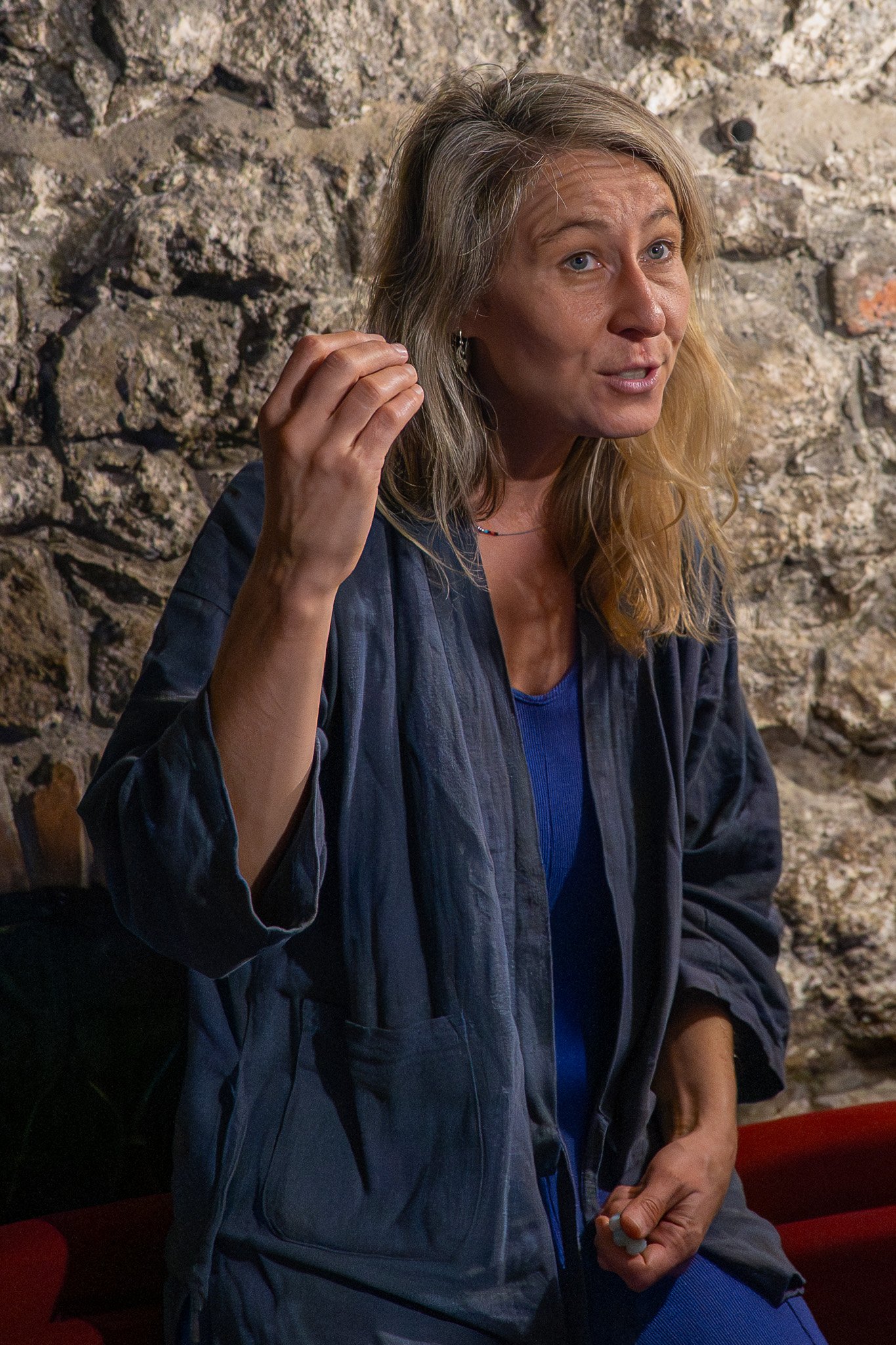 Jej zdaniem, mała scena teatralna podziemi budynku dawnego ratusza pozwoliła na stworzenie scenografii adekwatnej do emocji ukazanych w spektaklu. – Scenografia przedstawia ciasnotę relacji – zauważyła reżyser, ale i podkreśliła, iż scenografia jest transparentna, iż oddaje to, co ma oddać.