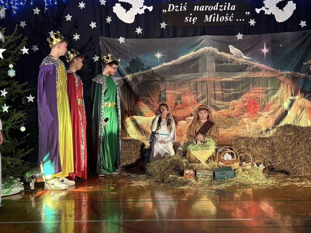 Na przedstawienie zaprosiła Rada Rodziców. Rozpoczęło się ono w godzinach wieczornych. Młodzi aktorzy bardzo się postarali i wiernie przedstawili historię podróży Maryi i Józefa do Betlejem, a następnie wizytę trzech mędrców ze Wschodu.