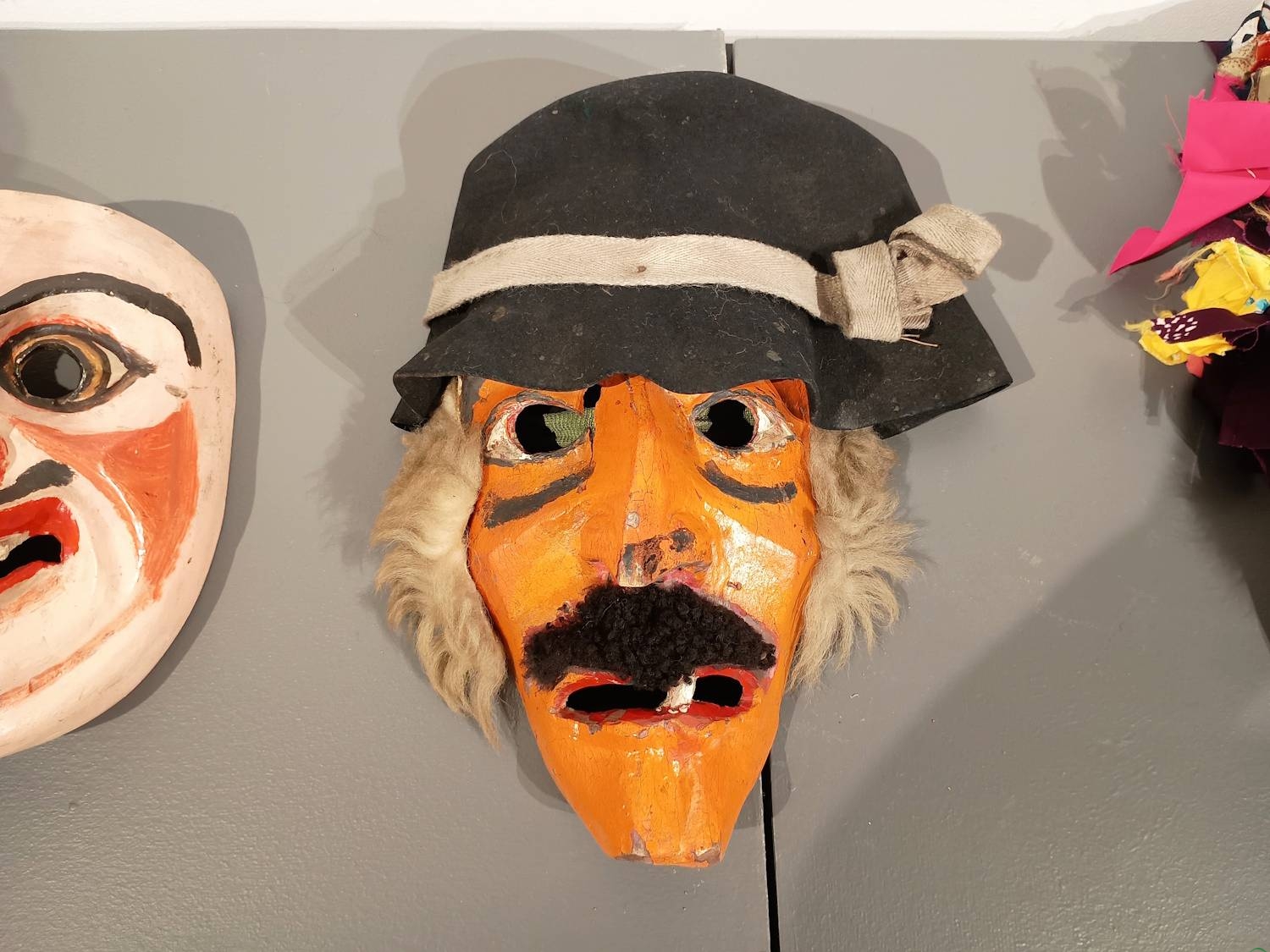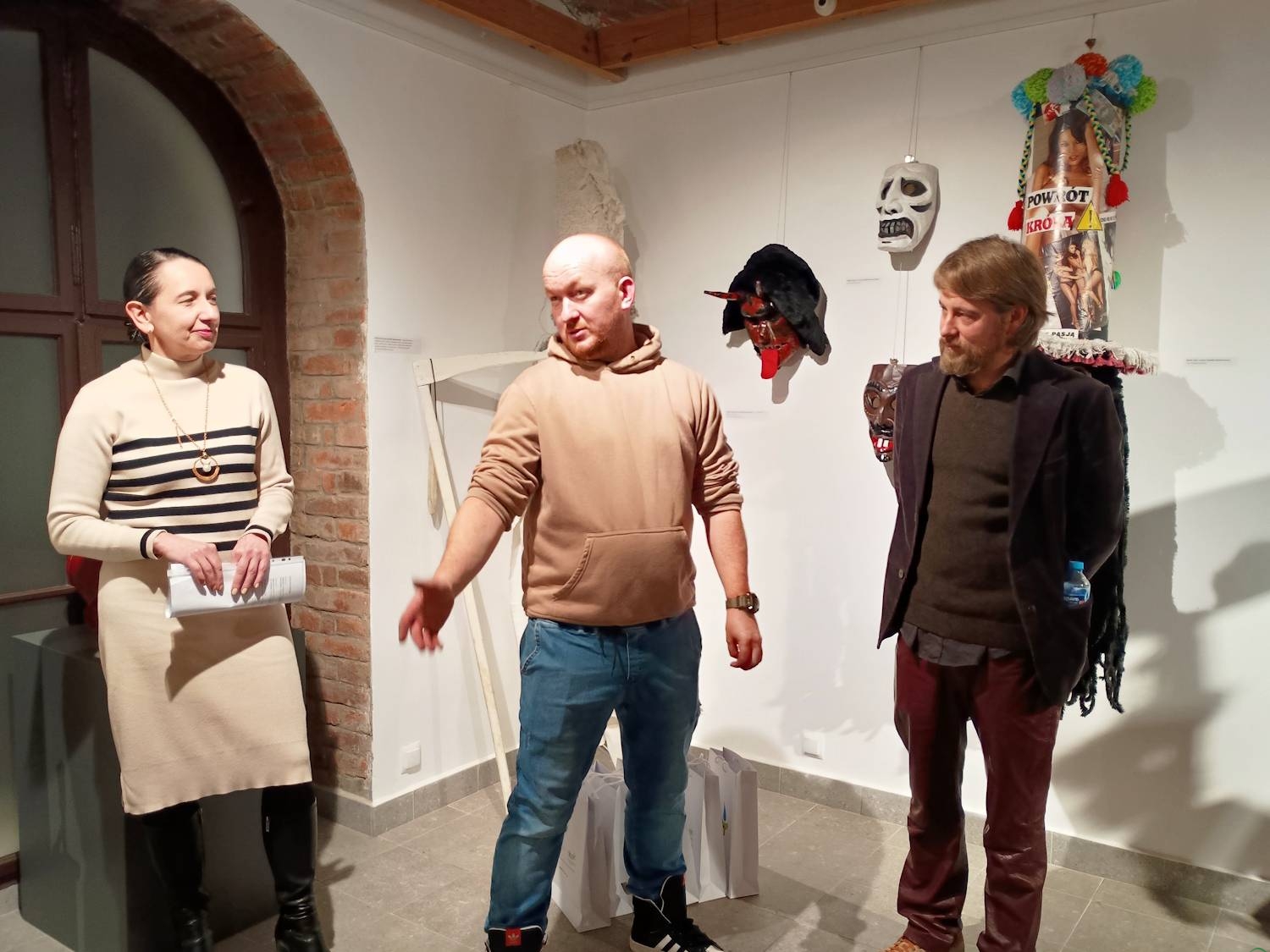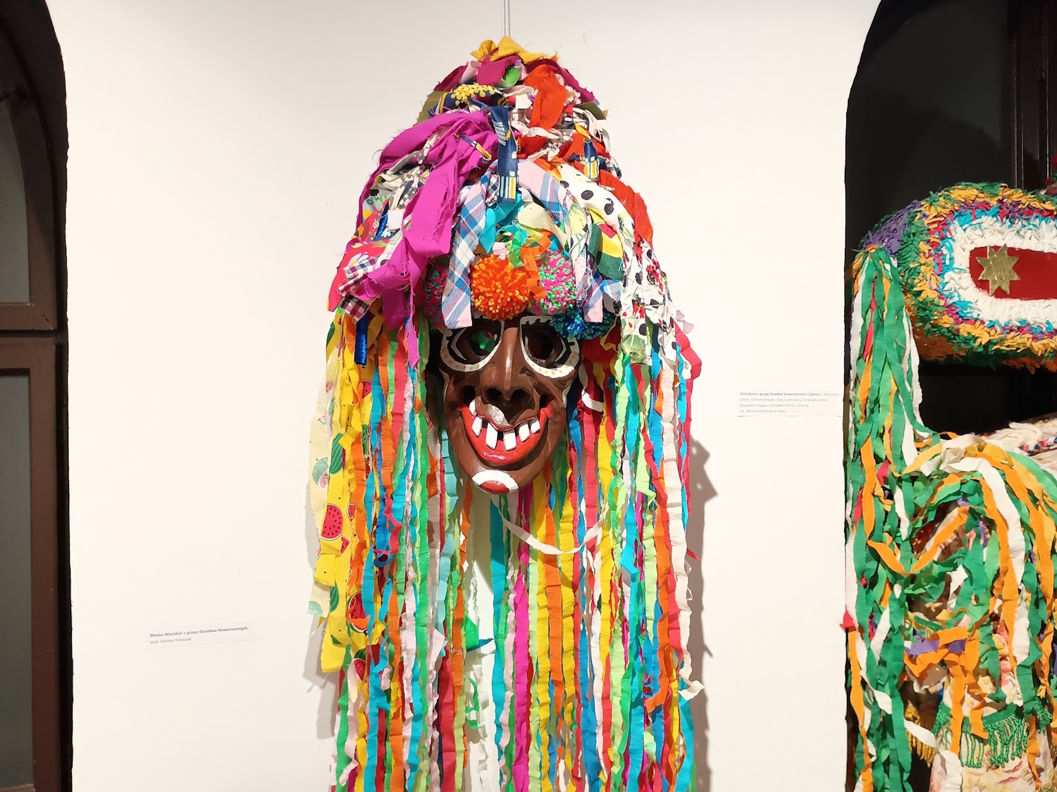 Eksponaty prezentowane na wystawie pochodzą ze zbiorów Muzeum Miejskiego w Żywcu, Muzeum Regionalnego Na Grapie w Jaworzynce, Gminnego Ośrodka Kultury w Milówce oraz zbiorów własnych ich autorów – Zbigniewa Krężeloka zwanego „Poleśnym”, Adriana Mokrysa i Bartłomieja Potasiaka. – Zająłem się rzeźbieniem masek w czasie pandemii i od tego czasu razem z żoną wykonujemy choćby całe stroje dziadowskie. Maski wykonuję z drewna lipowego, a potem maluję je farbami akrylowymi lub olejnymi, a gdy wyschną, zdobię kawałkami materiału czy bibuły – mówi Bartłomiej Potasiak z Cięciny.