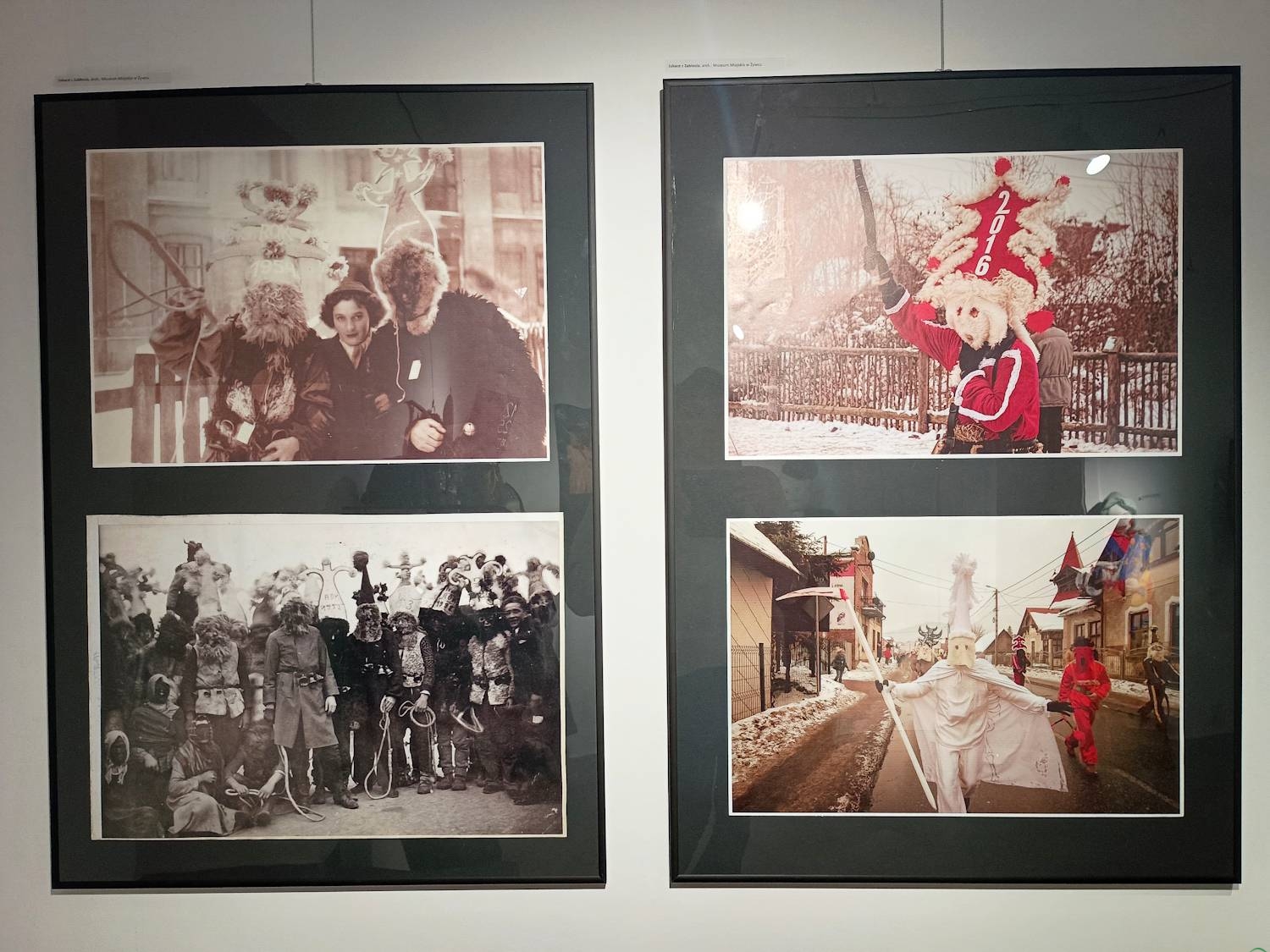 Wystawa zatytułowana jest „Dziady Noworoczne, Szlachcie, Jukace, Mikołaje” i towarzyszy 57. Przeglądowi Zespołów Kolędniczych i Obrzędowych „Żywieckie Gody”. – Szlachcice to grupa, która chodzi w dzień świętego Szczepana w Zwardoniu i okolicznych miejscowościach. W jej składzie są postacie Szlachcica, Żołnierza, Masarza, Górala, Żyda i Żydówki – opowiada Dariusz Kocemba z Regionalnego Ośrodka Kultury. – Dziady Noworoczne kolędują na przełomie starego i nowego roku w dorzeczu Soły, czyli w miejscowościach takich jak Zwardoń, Milówka, Cisiec, Cięcina, Żabnica i Szare. Są wśród nich takie postacie jak Śmierć, Niedźwiedź, Diabeł czy Konie. Z kolei Jukace z żywieckiej dzielnicy Zabłocie przechodzą o północy w sylwestra przez most na Sole, gdzie symbolicznie się zatrzymują, nie wchodząc dalej do miasta. Natomiast 6 grudnia w Istebnej, Koniakowie i Jaworzynce, czyli w Beskidzie Śląskim, chodziła grupa Mikołajów, z takimi postaciami jak Debeł, Niedźwiedź, Cygónka, Wojok i Baba. Dziś obrzęd ten kultywuje już tylko jedna grupa z Istebnej. Co roku wszystkie te zespoły kolędnicze można oglądać podczas przeglądu Żywieckie Gody.