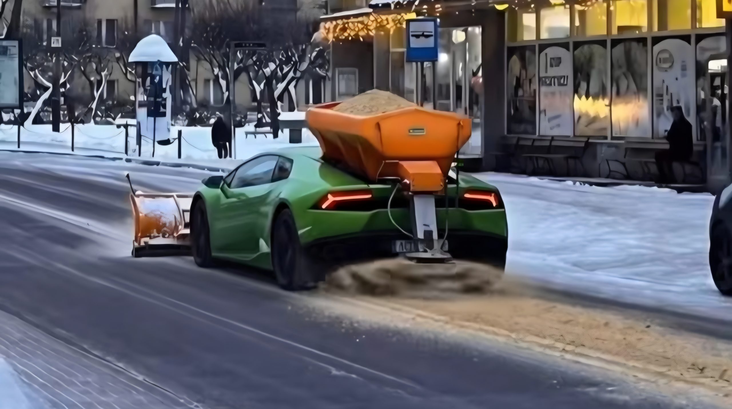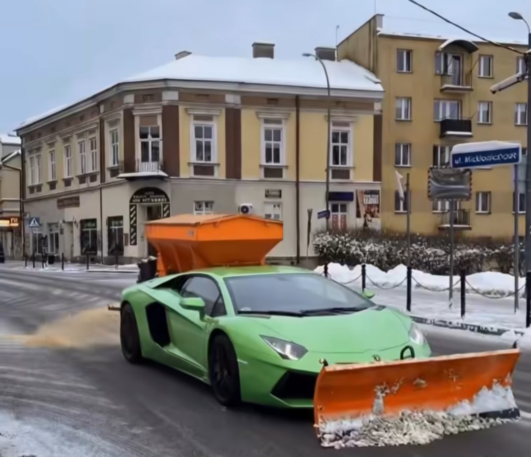 Czy Sanok doczekał się najbardziej luksusowej ekipy odśnieżającej w Polsce? W mediach społecznościowych pojawił się film, na którym zielone Lamborghini z pługiem i piaskarką odśnieża ulice miasta. Widok robi wrażenie – supersamochód sunie po zimowej nawierzchni niczym pojazd z przyszłości.